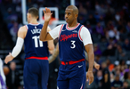快船首发后场哈登+比尔都不以防守见长,替补保罗、博格丹、大洛的防守能力相信大家都看在眼里急在心里,快船替补尤其在防守1/5挡拆的画面实在惨不忍睹。