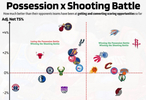横轴往右代表能比对手获得更多出手 纵轴向上是比对手终结效率更高