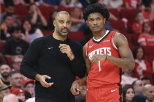 周三晚上,汤普森表示他想把注意力转移到抓下防守篮板上,这样他就能发起一些在第三节扭转局势的转换进攻。凭借惊人的天赋,他能够通过篮板球、转换进攻得分、一对一防守,或是当对手包夹火箭的全明星中锋时,凭借与申京心有灵犀的默契空切至扣篮点,来影响比赛。