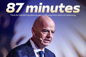 世界杯抽签仪式于今晨举行,据天空体育统计,本次抽签仪式从开始到抽出第一支球队共耗时87分钟,几乎和一场足球比赛时间一样长。
