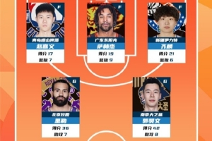CBA常规赛第1轮最佳阵容:赵嘉义、萨林杰、齐麟、里勒、郭昊文