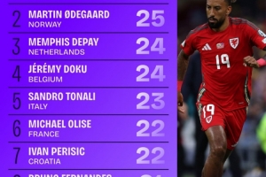 本届世欧预创造机会榜:厄德高、德佩、多库、托纳利均列前五