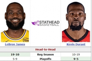 据统计,这将是詹姆斯和杜兰特生涯的第44次交手(包括常规赛+季后赛)!