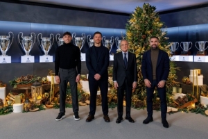 皇马社媒晒圣诞合照:弗洛伦蒂诺携阿隆索及两大队长同框亮相