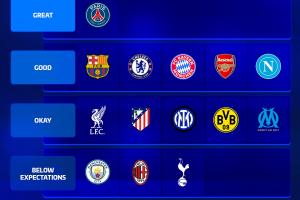 体育资讯12月28日讯 2025年即将结束,德转发布了一张他们对各家欧洲豪门今年表现的评级,巴黎唯一“顶级”,皇马、曼联尤文“拉完了”。