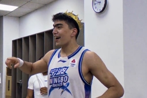 赛后更衣室内,总经理刘家成用英文称赞外援们的表现,并给鲁吐布拉戴上王冠。