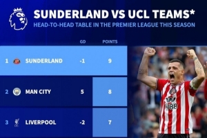 体育资讯1月2日讯 英超已经进行了19轮,《转会市场》统计了本赛季至今英超联赛对阵上赛季欧冠区球队的拿分情况,升班马桑德兰9分最高。