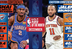 在过去的12月,布伦森两次当选周最佳球员,并率领尼克斯夺得NBA杯冠军。整个12月,他共出战13场比赛,场均贡献30.6分、7.1次助攻和3.2个篮板,投篮命中率、三分命中率和罚球命中率分别达到47.5%、40.5%和82.6%,在其出战的比赛中帮助尼克斯取得10胜3负的战绩。