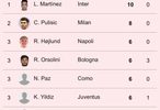 【意甲射手榜】 2025-26赛季#意甲联赛# 第18轮射手榜。#sempremilan#
