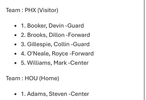 太阳vs火箭 首发: