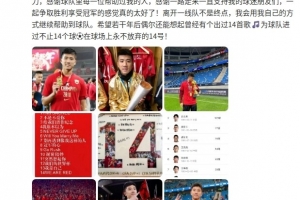 从全运会小将到今天的老将,很幸运职业生涯能一直在上海海港这么棒的俱乐部效力,感谢球队里每一位帮助过我的人,感谢一路走来一直支持我的球迷朋友们,一起争取胜利享受冠军的感觉真的太好了!离开一线队不是终点,我会用我自己的方式继续帮助到球队。希望若干年后偶尔还能想起曾经有个出过14首歌🎵为球队进过不止14个球⚽️在球场上永不放弃的14号!
