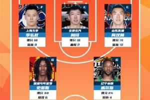 2025-2026赛季CBA联赛常规赛第11轮结束较量,来自上海久事大鲨鱼的李弘权 ,北京首钢的周琦,山东高速的陶汉林,深圳新世纪烈豹的史密斯和辽宁的威尔斯入选CBA联赛常规赛第11轮最佳阵容!