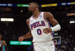 上半场,76人后卫马克西火力全开,打了18分钟13投8中,三分9中4、罚球1中0拿到20分2篮板4助攻2抢断1盖帽,正负值+18。