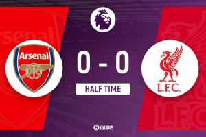 上半场伤停补时2分钟,半场结束,阿森纳暂0-0利物浦。
