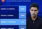 此外,阿尔特塔的球队本赛季在联赛主场的战绩为9胜2平,两场平局正是对阵利物浦和曼城。
