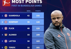 虎扑01月14日讯 根据德国转会市场的统计,孔帕尼是德甲联赛历史上执教前50场获得积分第二多的教练,仅次于瓜迪奥拉。