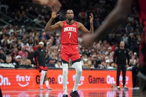 首节比赛,火箭前锋凯文·杜兰特发挥出色,他多次凭借个人能力单打硬解,帮助球队紧咬比分!